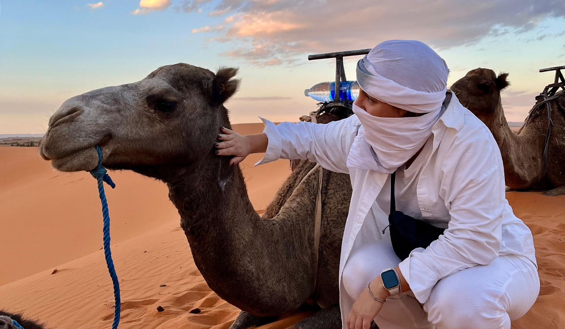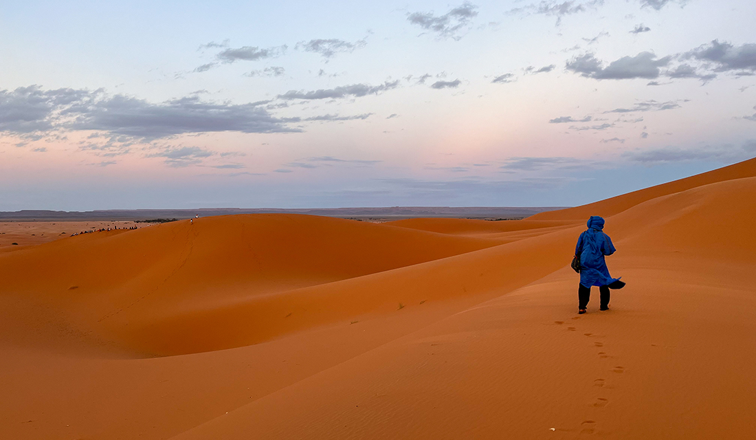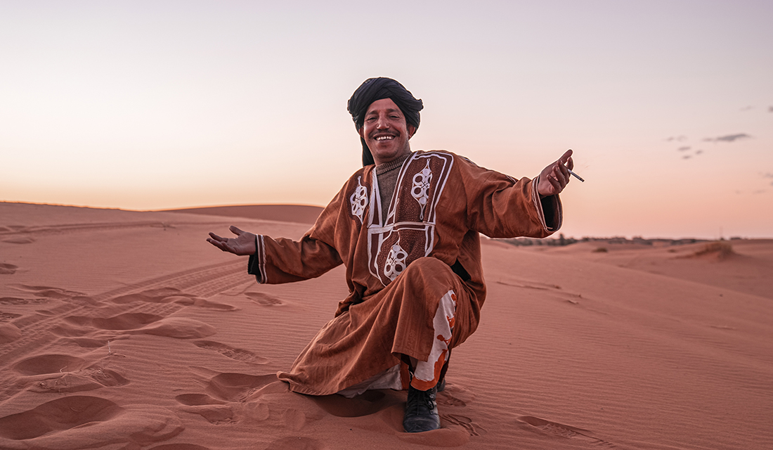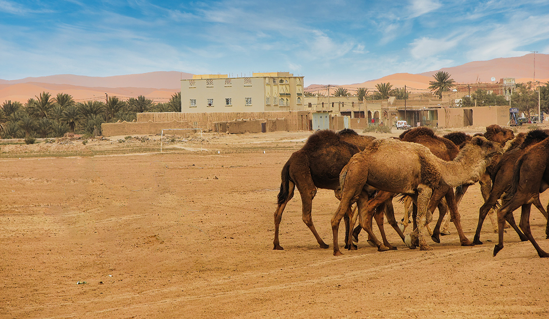 Nakon Fesa, grada koji na putnike uvek ostavlja snažan utisak, nastavljamo put ka Sahari, najpoznatijoj pustinji na svetu. Vožnja nas vodi kroz predele koji ostavljaju bez daha, pored oaze Ziz i brojnih berberskih sela. Po dolasku u mesto Merzouga, presedamo u džipove i stižemo do pustinje, gde se smeštamo u kamp usred peščanih dina. Posebno iskustvo predstavlja zalazak sunca i jahanje kamila, uz pogled na nepregledne peščane dine i „beskrajni“ pesak Sahare.