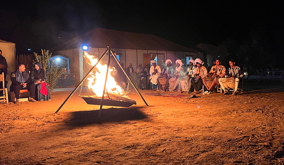 U berberskom pustinjskom kampu, naši domaćini pripremaju tradicionalnu večeru, a veče provodimo uz vatru, muziku i upoznavanje njihove kulture i načina života – sve to pod vedrim nebom i hiljadama zvezda iznad Sahare.